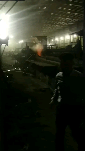 照片为:产量15吨/小时天然气轧钢加热炉工作现场,地点:甘肃兰州。