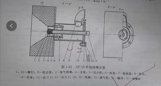 采用AP-30焦炉煤气平焰烧嘴,结构如图4-82所示。