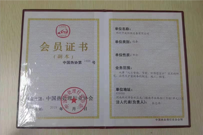 郑州中威环保设备有限公司成功加入中国热处理行业协会。
