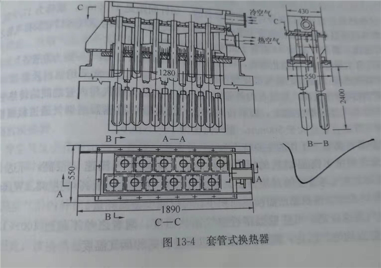 该换热器的工作过程是空气由冷风箱沿内管下流,再转入内外管夹层向*,*经热风箱流出换热器。烟气在管外垂直于外管流动。目前较多工厂采用这种换热器。
