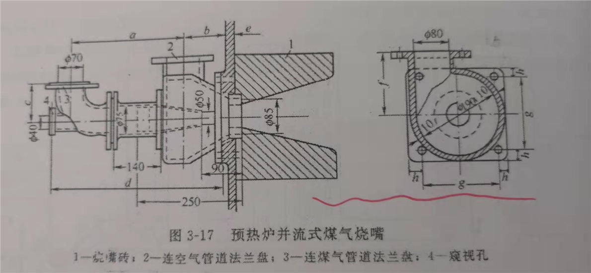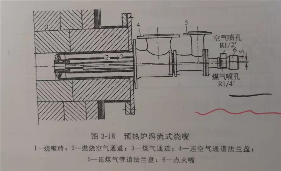 预热炉烧嘴有多种,使用比较多的是并流式烧嘴(见图3-17)。