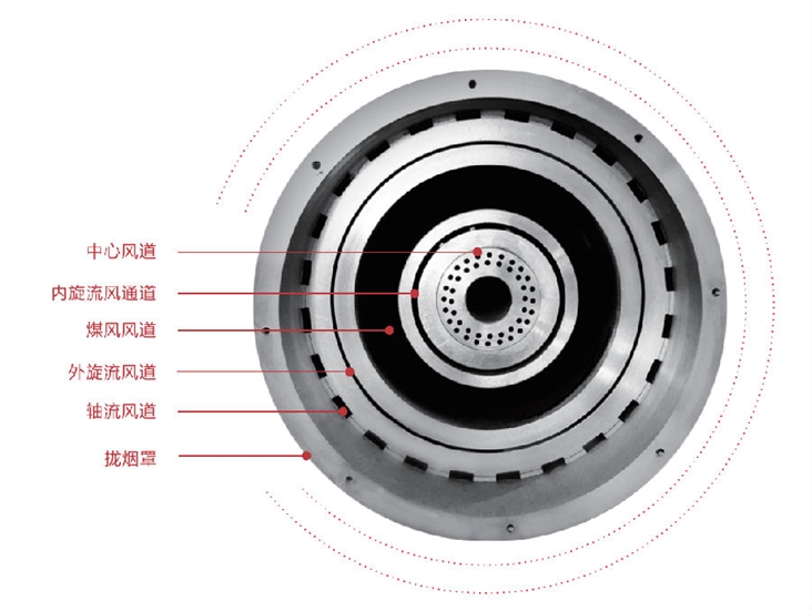 (1) 燃烧器内设有*管一个,而管内设有保护套管一个,用以保护喷嘴;管道向外依次为煤粉管、径向风管、燃烧器外管,外旋流风道结合了强化内部结构的设计理念,使喷口不轻易发生变形问题,且风的量与速均可调节。