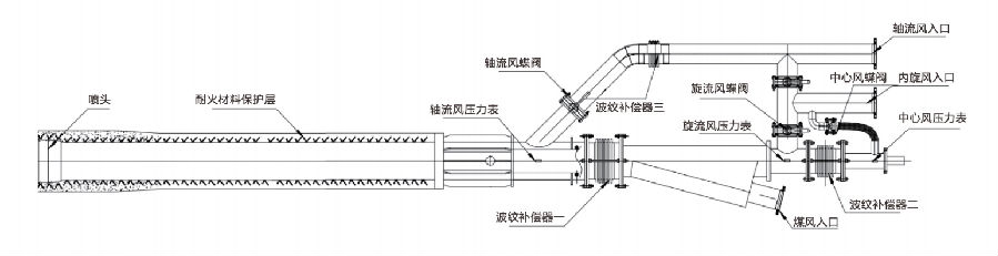 煤粉燃烧器确保了气体燃料、煤粉与空气、一次风与二次风充分混合,热强度增大、燃烧率提高、火焰调节更为方便简单,可广泛适用于各种冶金、化工回转窑设备。