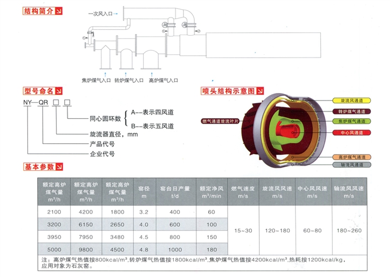 多通道混合气体燃烧器,是郑州中威环保设备有限公司为适应钢铁、化工等行业可燃废气的热值过低,一气体不能满足回转窑工艺需要的实际情况而研制出的。利用自主技术,开发的适应高炉煤气、转炉煤气、焦炉煤气、电石炉煤气、电炉煤气、矿热炉煤气、发生炉煤气等可燃气体多通道混合气体燃烧器。燃烧器燃烧效率高、火焰活泼有力、受气体压力变化影响小、*可靠。结构先进,维修方便。