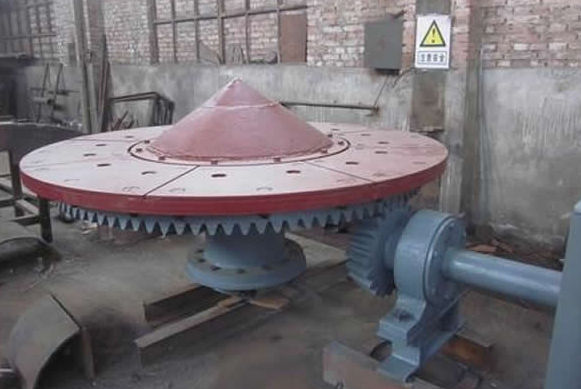 连续性不停风的均匀出灰,保持良好的石灰窑窑况,该石灰窑出灰采用两段密封阀和圆盘出灰机组成的出灰系统,圆盘出灰机能保证将烧成的灰块在不挤压破碎的情况下,避免粉化,完整的排出,并落到两段密封阀中。