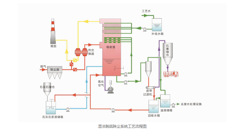 它采用价廉易得的石灰石或石灰作脱硫吸收剂,石灰石经破碎磨细成粉状与水混合搅拌成吸收浆液,当采用石灰为吸收剂时,石灰粉经消化处理后加水制成吸收剂浆液。在吸收塔内,吸收浆液与烟气接触混合,烟气中的二氧化硫与浆液中的碳酸钙以及鼓入的氧化空气进行化学反应被脱除,*终反应产物为石膏。脱硫后的烟气经除雾器除去带出的细小液滴,经换热器加热升温后排入烟囱。脱硫石膏浆经脱水装置脱水后回收。由于吸收浆液循环利用,脱硫吸收剂的利用率很高。石灰石料源广泛,原料易得,且价格低廉,因而到目前为止,在各种脱硫方法中,仍以石灰/石膏法运行费用*。