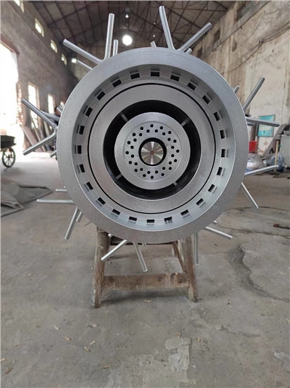 煤风通道:设计科学,在使用中不易堵塞,对易摩损部位粘陶瓷保证使用寿命.直流风通道口安装了12-16个周向分布的喷嘴,喷嘴特殊的腔体线形设计和加工精度可使喷嘴出气流刚劲有力,能量损失少,提高直流外风的出口动量,改善喷射流形.此外直流风通道外部还设有稳焰罩,以避免火焰过早发散,同时还起到了保护喷嘴头部的作用。